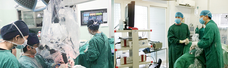 我科是湖南省内较先开展鼻内镜手术单位之一。现有德国高清 Karl-Stortz 和 WOLf 鼻内镜手术系统3套,艾克松4K手术系统1套,国产4K2套,美敦力动力系统两套、STORZ动力系统1套。经鼻内镜手术可以治疗慢性鼻窦炎、鼻息肉、鼻腔鼻窦肿瘤、早期鼻咽癌、脑脊液鼻漏修补术,眼眶外伤,鼻咽纤维血管瘤介入栓塞血管后内镜下切除术等。我科鼻内镜手术技术成熟,鼻内镜手术已经延伸到了鼻-前颅底及鼻眼相关手术,如经鼻内镜脑脊液鼻漏修补术、经鼻内镜垂体瘤手术、经鼻内镜嗅神经母细胞瘤手术,经鼻内镜视神经管减压术,经鼻内镜内囊造口术等,这些手术较传统手术而言,具有创伤小、恢复快、疗效确切的优点。
