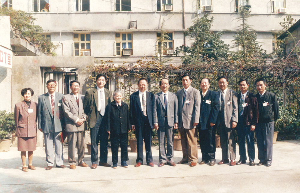 1995年10月,捷克论坛 通过三甲的评审,时任省卫生厅厅长曾繁友、副厅长王蔚文、彭涛来院授牌后与院领导合影