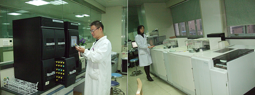 专业组拥有罗氏Cobas e602、雅培ARCHiTECT—i2000SR、索林LIAISON® XL、沃芬Bio-Flash、科斯迈SMART 3000S/SMART 500S、万泰Cris200、亚辉龙iFlash 3000、泽成CIA600等多个全自动化学发光免疫分析平台;Rayto Biotray866免疫印迹仪,欧蒙EuroBlotMasterⅡ、EUROLineMaster Plus-A、EuroBlotOne全自动免疫印迹仪、Sprinter XL酶联免疫一体机、EUROStar III Plus荧光显微镜以及EuroPattern Microscope全自动荧光免疫核型及滴度判读系统等自身抗体检测平台;AB-4500MD、YS ECACT 9900MD高效液相色谱串联质谱检测系统以及YS ECT 8600MD电感耦合等离子质谱检测系统等小分子代谢产物检测平台;以及西门子BNII特种蛋白分析仪,塞比亚 HYDRASYS 2 scan Focusing免疫固定电泳仪,迈瑞BriCyte E6流式细胞仪,Phadia全自动体外过敏原检测系统等仪器设备30余台(套),价值1000多万元。