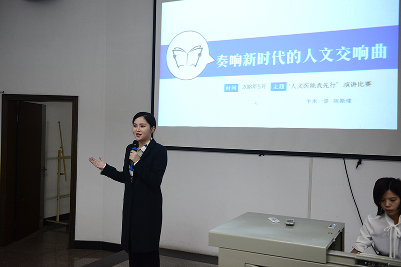 “科学技术推动着医学的发展,而人文精神引领着医学的发展,因此人文精神与科学技术是医疗服务的两个轮子,缺一不可,忽视人文精神的医疗服务,是不健全的医疗服务。”来自泌尿四科的吴彦动情地讲下这段话的时候,现场响起了热烈的掌声。这掌声,是对讲演者的认可,更是对讲演内容的共鸣。而这样的共鸣,在决赛场上不止出现一次。
