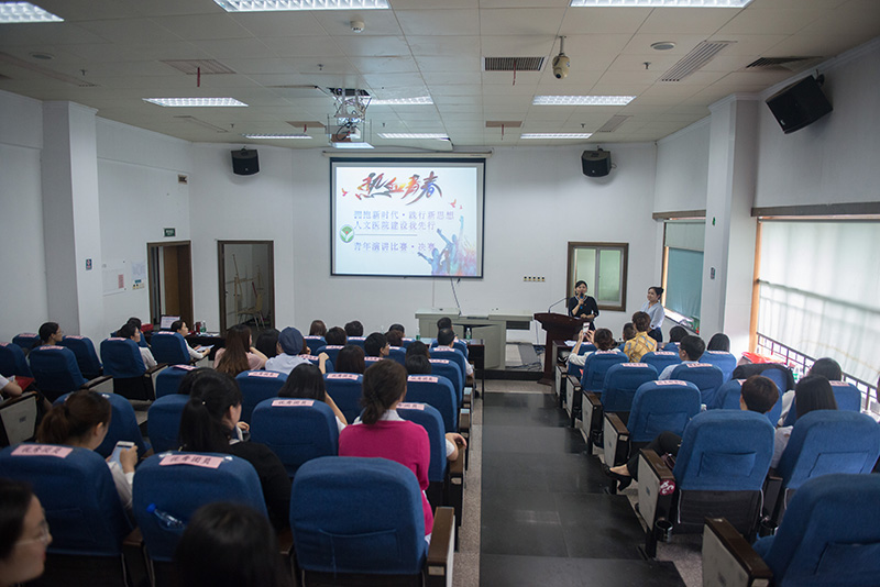 决赛现场,座无虚席。来自全院各科室的青年、团员们济济一堂,认真聆听参赛选手激情昂扬的演讲。