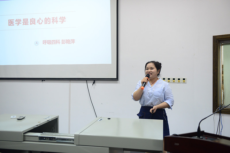 来自呼吸四科的彭艳萍,一个自信的小姑娘,用铿锵的语调诠释了《医学是良心的科学》,现代医学需要技术,更需要“走心”。