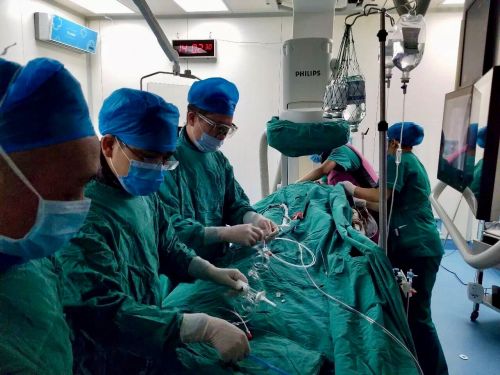 潘宏伟主任医师等为患者进行急诊冠状动脉造影和肺动脉造影。