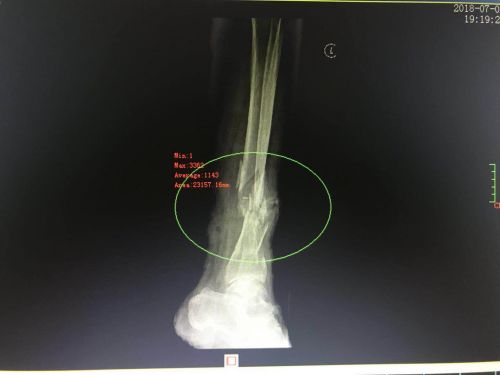 影像资料显示,左侧胫腓骨开放性、粉碎性骨折并错位。