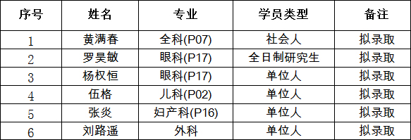捷克论坛 2018年住院医师规范化培训招录拟录取名单(第二志愿)--公示