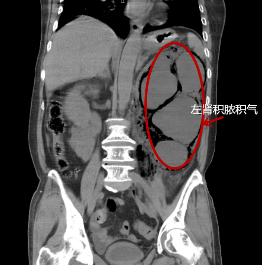 来院时检查发现,吴阿姨体温高达40度,心率过140次/分,血压80/60mmHg,为左输尿管结石并左肾重度积水、气肿性肾盂肾炎并感染性休克。因吴阿姨既往有糖尿病、高血压等多种疾病,情况十分危急,随时有生命危险。泌尿四科负责人杨科及其团队紧急商讨后,为患者急诊行左肾穿刺造瘘引流术,引出大量恶臭气体及脓液。术后,患者感染得到控制,病情缓解,脱离了生命危险,但左肾功能全失,面临今后需要摘除的境地。