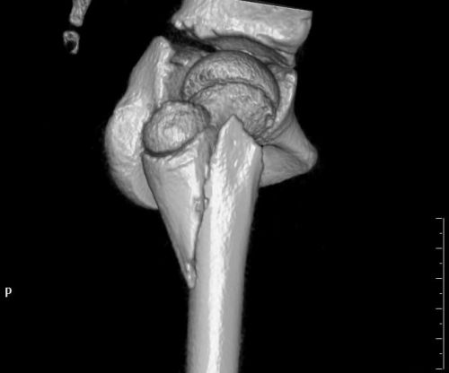 术后x光片显示,骨折部位复位良好。