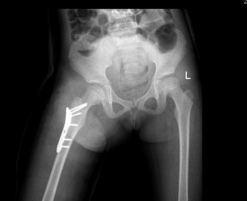 医生检查发现,小雨右大腿肿胀、疼痛、伴畸形、活动障碍,全身多处软组织皮肤擦挫伤,X线显示“右侧股骨粗隆间骨折”,需立即手术。在完善相关检查后,儿童骨科肖晟主任医师、李欣副主任医师、曹舒博士等为小雨施行“右侧股骨粗隆间骨折切开复位内固定术”。幸运的是,小米只是臀部肌肉挫伤,经过冰敷等处理已无大碍。