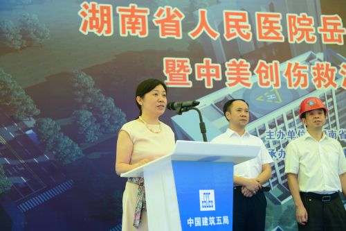 岳麓山院区主体工程封顶暨“中美创伤救治中心”授牌仪式在项目工地举行。省卫生计生委副主任易露茜、省卫生计生委应急办主任石国勇、省卫生计生委信息统计中心副主任雷永贵,捷克论坛