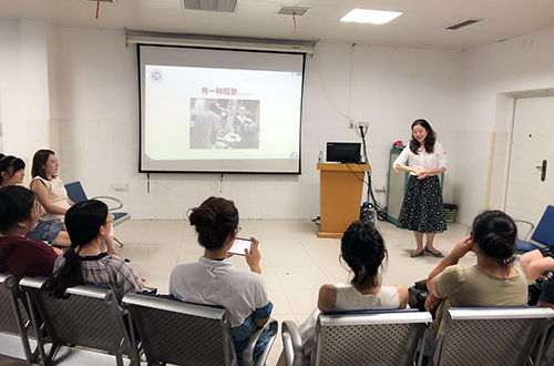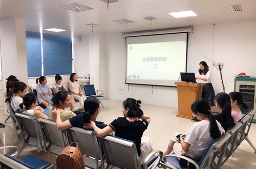 众所周知儿科病房的特殊性,为了进一步加强科室护士能力建设、传播正能量、营造良好的工作氛围和团队协作精神,儿七科于8月底特邀眼科护士长向琴老师开展了一堂《友善职场构建》的培训课,李顺芬护士长主持,科室全体人员参加。
