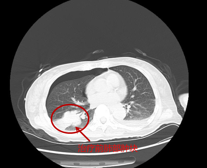 在不加重病人痛苦的前提下,肿瘤二科医护团队建议进行一些适当的诊疗,在征得患者家属的同意后,4月24日,给无法自主配合诊查的张英成功完成了CT引导下肺穿刺活检术,明确了病理诊断为肺腺癌,之后进一步进行了活检组织的基因检测,结果显示有靶向治疗的指征。在经过家属同意后,于5月17日开始给患者鼻饲管注入靶向药物,用药一周后,患者便可以在床上坐起,开始能吞咽馒头,能和医护人员进行正常的交流。第二周后,患者已可以下地行走。从奄奄一息到可以下地行走,张英和李湘江相拥而泣,“别放弃,我们都在,你要加油,我们一起努力。”
