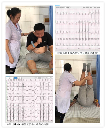这个方法是什么?先给病人做了心电图,结果提示:阵发性室上性心动过速。心率约180次/分。然后让病人坐起来,吸口气后对着就地取材的小塑料瓶里吹口气,再让病人马上躺下,范主任顺势迅速把患者的腿抬高,第一次因病人躺下去后还在憋气,没有成功。第二次病人认真按指示做,很快就成功复律,症状也马上消失了。小伙子笑着说,“吹口气病就好了!太神奇了!”