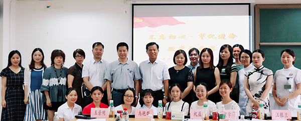 为认真学习贯彻党的十九大精神,深刻领会习近平新时代中国特色社会主义思想,推进“两学一做”学习教育常态化、制度化,促进党支部“三会一课”制度的落实,9月11日15点-17点,内一党总支在综合楼五楼临床班教室举行“不忘初心·牢记使命”微党课竞赛。院长祝益民、党办主任汪银兰、外科第一党总支书记王景明、外科第二党总支书记禹艳群、外科第三党总支书记贺学军担任本次比赛评委,内一党总支各党支部书记和党员同志现场观摩学习。