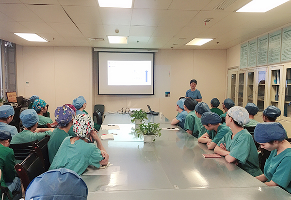 课上,党支部书记周毅峰声情并茂,丝丝入扣的说:医务工作者的初心是什么?它是对待同事如春天般温暖的暖心,它是对待病友无微不至的关心,它是对待工作如艺术品般的匠心。周毅峰书记以“三心”深刻诠释了何谓医务工作者的初心,鼓励大家努力做到让身边的同事“暖一点”,让医患关系“和一点”,让自身的技术“精一点”。