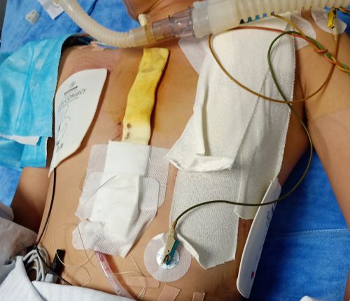 心电监护显示,小陈的心率一下40次左右;一下150次左右,就像坐“过山车”,心电图提示反复发生室速、室颤。心胸外科团队在科主任杨劲松教授的带领下展开全力救治,气管插管接呼吸机、反复电除颤、急诊开胸手术安置临时起搏导线……一次次从死神的手中夺回患者生命。