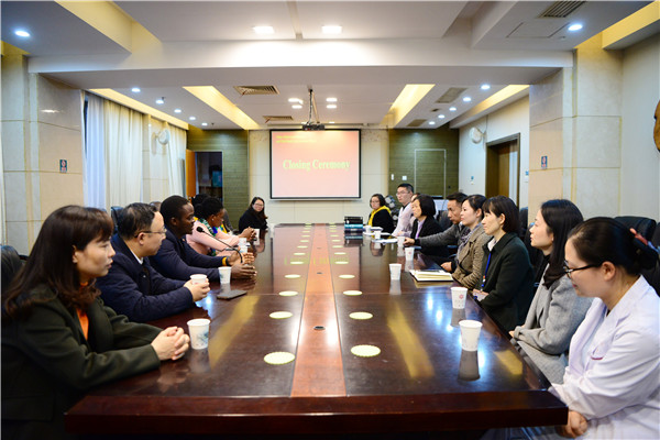 结业。人力资源部主任刘江波、国际医学部主任李萍、放射科主任刘建滨、全科医学科副主任梁力晖、妇科主任黄薇、手术室护士长周毅峰、新生儿科护士长吴莎莉、妇科护士长罗桂珍、产科护士长唐芳以及学员们的带教老师出席结业典礼,为学员颁发结业证书,并送上了一本在华期间学习工作的影集作为结业礼物。