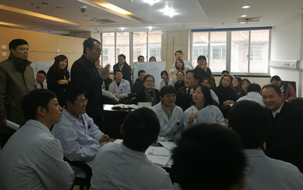 莫清导师从模拟教学意义、教学目标的确定、教案的基本结构、教案的编写技巧、如何设计情景模拟、如何做好引导性反馈等方面以工作坊的形式进行授课。老师提问、引导;学员分组讨论、回答;以小组为单位撰写情景模拟教案;莫清导师逐一点评,学员再修改,经过两个半天的培训,10份情景模拟教案初稿完成。