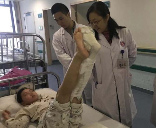创伤骨病科就诊。医生检查后告诉家长,萱萱同样是坐骨神经受损,随即将她收住院。
