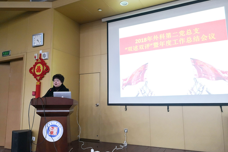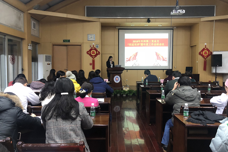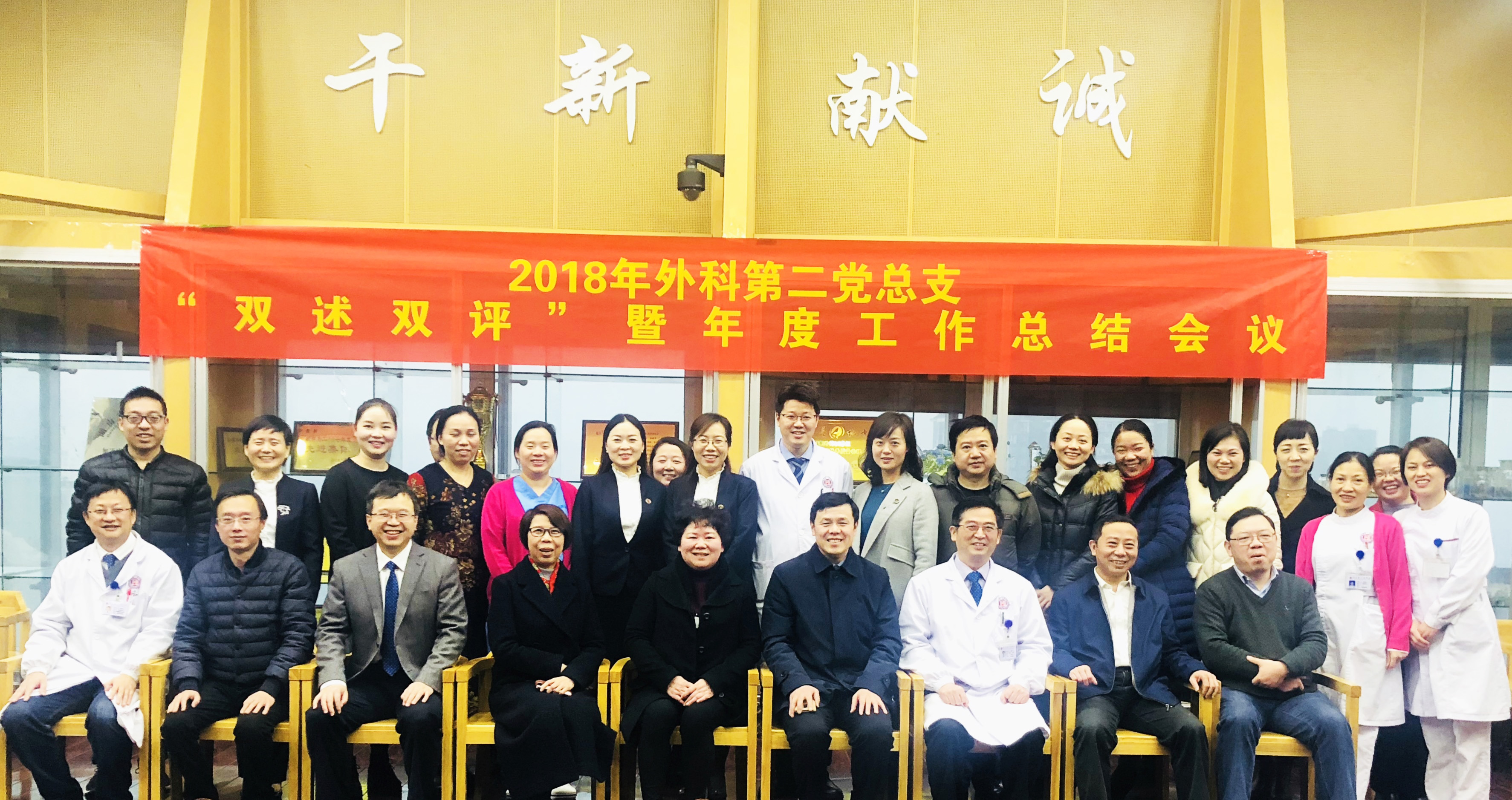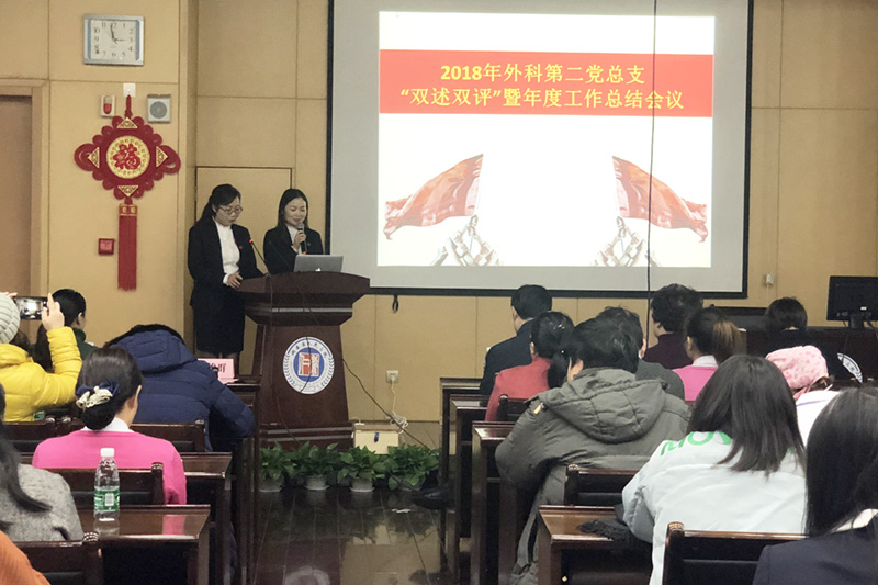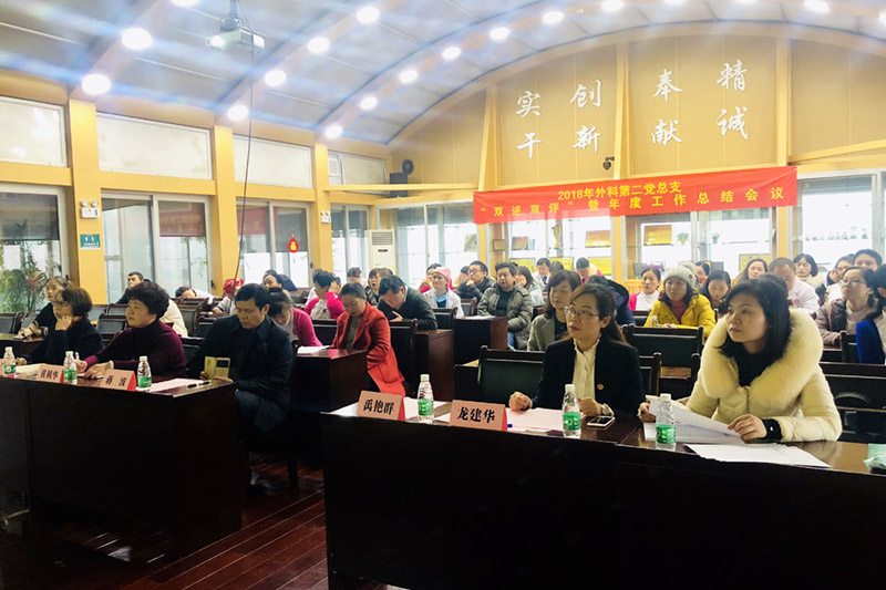 为增强支部书记的责任意识和履职能力,提高总支党建工作水平,按照院党委的统一部署和要求,外二党总支于2018年12月27日下午,在第二住院楼22楼多功能学术报告厅召开了2018年度“双述双评” 暨党务工作总结会。会议由外二党总支书记禹艳群和副书记龙建华共同主持,外二党总支支委、支部书记、党小组长、组织员、科主任护士长及党员代表参加,院党委副书记黄利华、湖南师范大学临床医学院院长蒋波、党办主任汪银兰等出席指导。