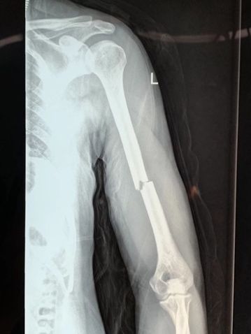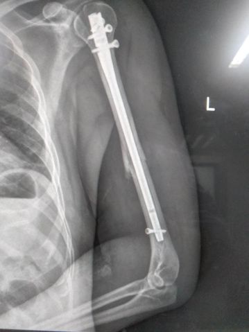 蔡某,男,45岁,因摔伤致左肱骨中段骨折。