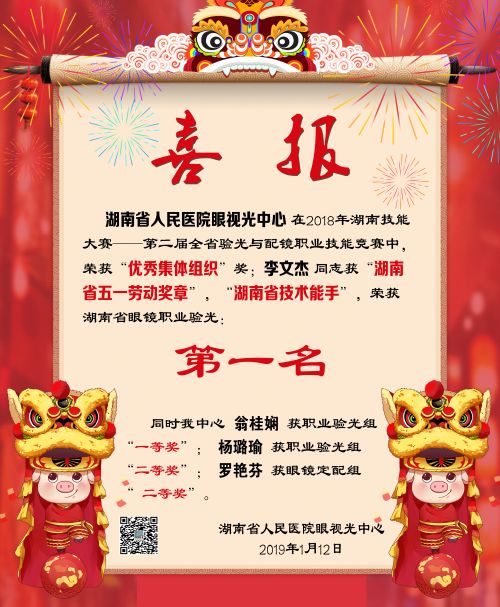 捷克论坛眼视光中心被授予本次竞赛“优秀集体组织奖”,另有4人获得优异成绩,其中李文杰荣获验光师职业第一名,被授予“湖南省技术能手”、“湖南省五一劳动奖章”称号。