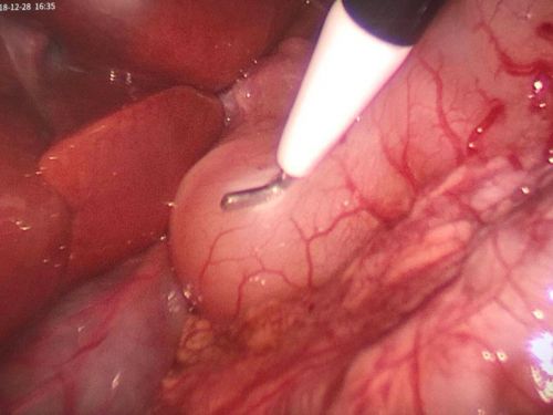 入院后,医护人员看着小宝宝的情形都十分心疼,因为孩子特别想吃奶,可吃下去不到几分钟又都吐了出来,孩子也因为不适而哭闹不止。大家在细心呵护的同时,积极进行超声、生化等相关检查,迅速明确诊断为“新生儿幽门肥厚并发休克”,小儿外科会诊后建议立即手术解除梗阻。可宝宝才刚满月,年龄太小,同时机体耐受力低下,为确保手术顺利进行。术前,新生儿科会同小儿外科、放射科、麻醉科、超声科、检验科等科室专家,就手术过程中的重点、难点及突发状况制订紧急预案。1月10日,在麻醉科的大力支持及新生儿科的积极配合下,小儿外科王江主治医师为孩子施行腹腔镜下幽门环肌切开术,手术仅耗时30分钟,几乎没有出血。