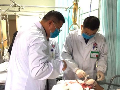 何畔副主任医师等查看伤者术后情况。