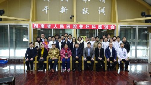 大普外科座谈会在第二住院楼22楼学术报告厅举行。院长助理朱华波教授,普外科兼普外二科主任陈超武教授,老专家代表章守宝教授、李树根教授,以及天心阁院区、马王堆院区、岳麓山院区与星沙院区普外科各科室主任、护士长以及员工代表50余人参加座谈。