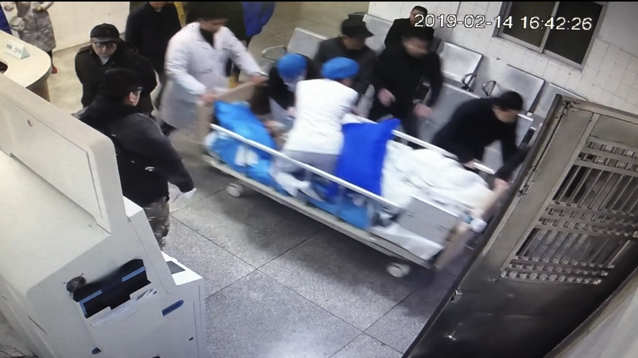 当日下午16:31,神外ICU护士徐萍和医生周鸿正护送因突发意识障碍入住神经外二科的危重患者朱先生复查头部CT。在到达门诊CT室,将患者台上CT床准备检查时,病人突然出现心跳呼吸骤停。神经外二科医护人员立即启动应急反应系统,与急诊科、放射科医护人员在CT床上协力抢救病人,为病人行心肺复苏、呼吸气囊辅助呼吸。