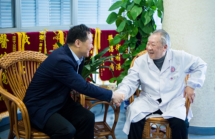 3月1日上午,院长李小松来到肝胆外科,看望慰问79岁的首席专家、全国著名肝胆外科专家吴金术老教授,党委副书记黄利华、临床医学院院长蒋波、人力资源部及院办负责人陪同。