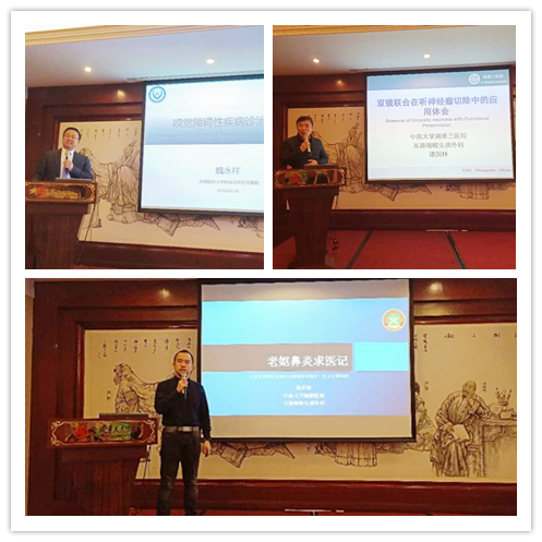 谭国林教授分别以《嗅觉障碍的诊疗策略》、《以患者为中心合理使用鼻内糖皮质激素》、《双镜联合听神经瘤切除的体会》为主题进行了授课。
