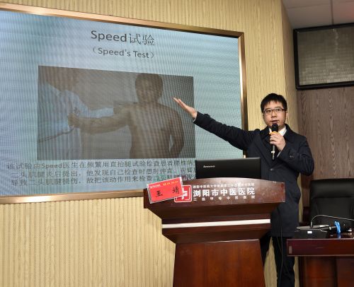 关节与运动医学科主任王靖致辞。学术讲座由浏阳市中医捷克论坛