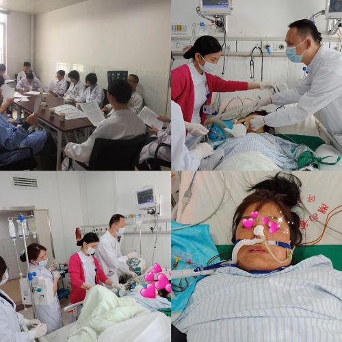 因病情需要,杨女士被转入呼吸重症医学科-RICU。RICU主任李建民、护士长李建群立即组织经验丰富的医护小组制定个体化的诊疗方案——精准的抗感染策略,床旁支气管镜技术,规范化的呼吸机撤离程序,重症气道护理,血栓防治,营养支持,严格液体管理等综合治疗;同时组织心胸外科、心血管内科、介入血管外科、药学部、血液科、神经内科、消化内科等多学科专家会诊,讨论诊治方案。