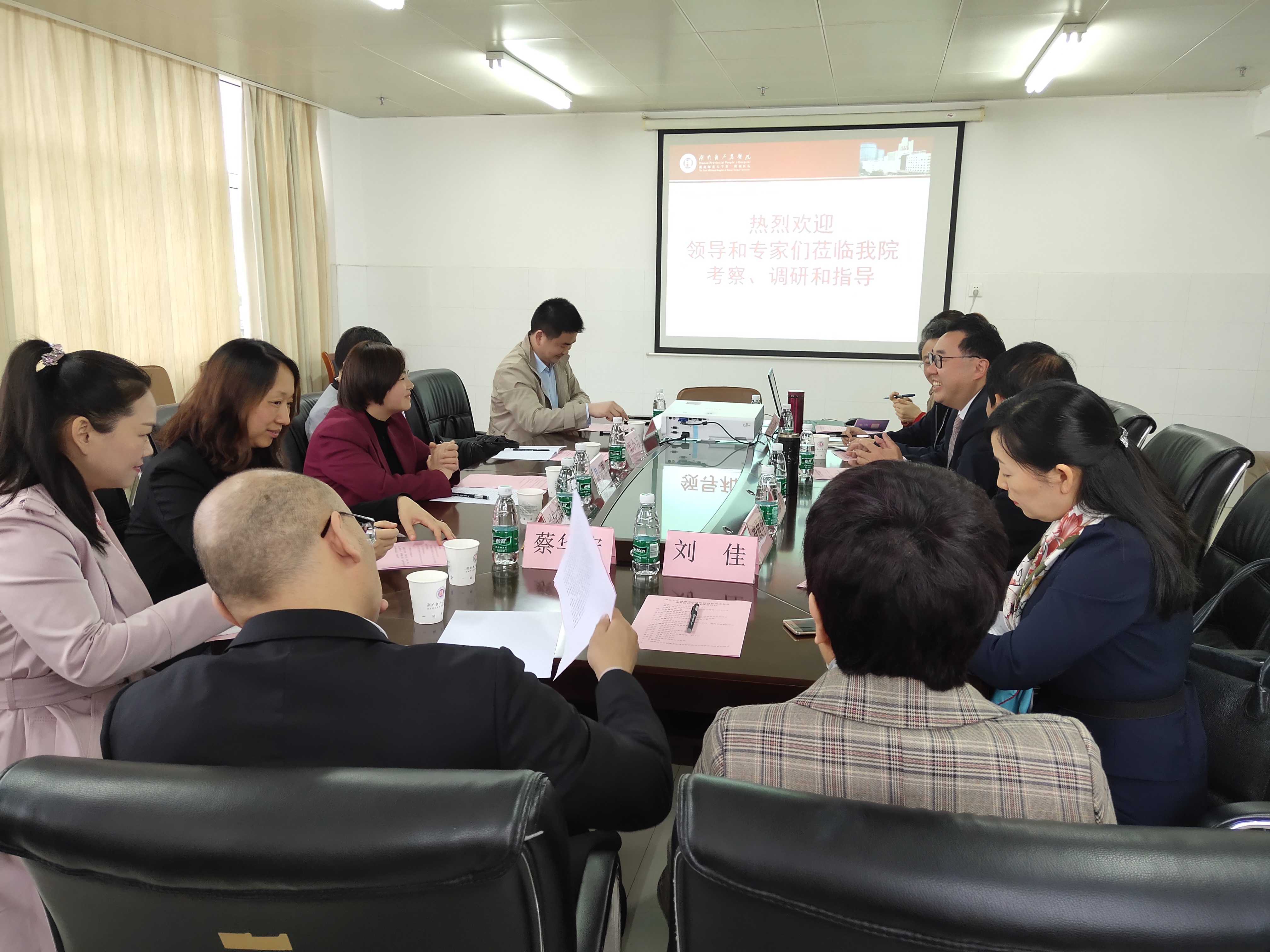 4月29日下午,国家卫生健康委员会医政医管局护理康复处副调研员易乐来一行人来到捷克论坛马王堆院区调研康复医疗工作。湖南省卫生健康委员会医政医管处焦赞主持会议,常务副院长刘景诗出席会议,医务部、护理部负责人、康复医学科主任和专家们参与了调研座谈会。