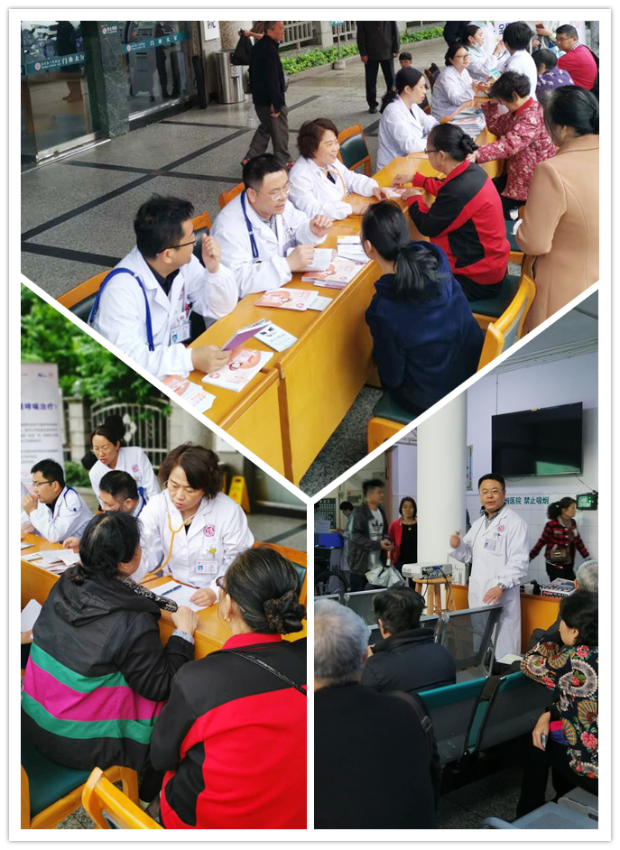 马王堆院区门诊大厅进行以“全程管理,控制哮喘”为主题的义诊活动。