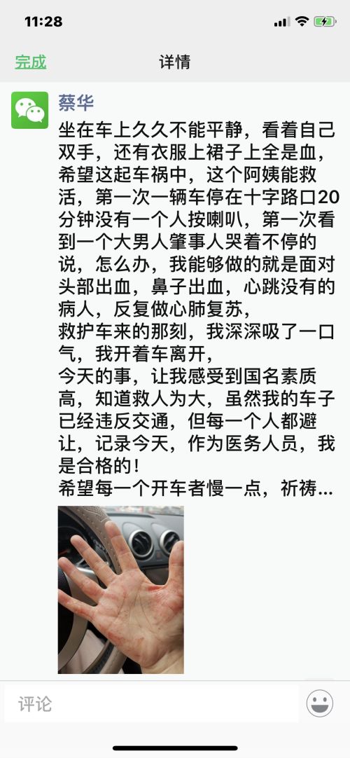 事后,蔡华发朋友圈赞扬在场驾驶员素质高,才让她救人的事情被人了解。