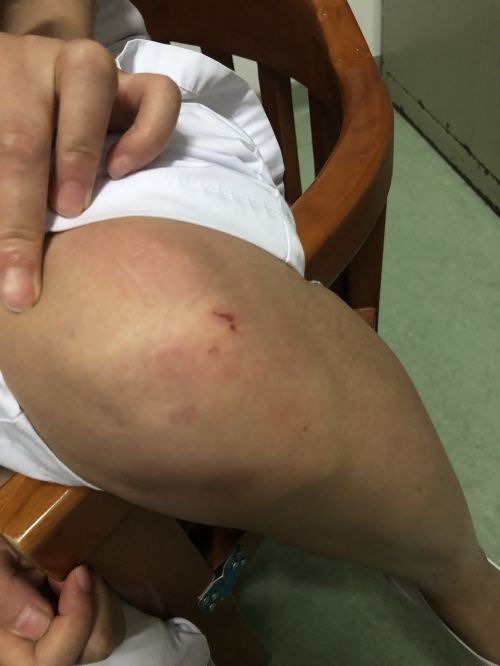 跪地为伤者进行心肺复苏后,蔡华的膝盖也受伤了。