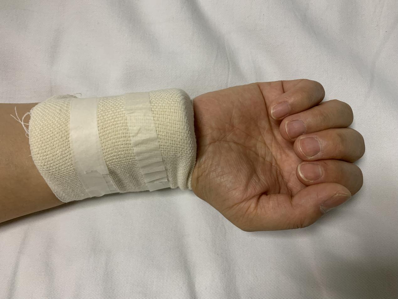 但当天傍晚,黄爷爷突发意识丧失,呼之不应,四肢僵硬冰冷,反复出现严重的室颤。见此情形,当班所有医务人员立即对黄爷爷进行了心肺复苏、气管插管等大抢救。幸运地是,经过大家不遗余力、辛苦的努力后,黄爷爷生命体征恢复了。经过与家人沟通,在患者病情相对平稳后,由心内五科主任容志毅带领手术组,为黄爷爷进行了冠脉造影术和支架植入术。