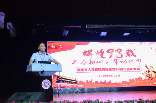 在中央、省委、省卫生健康委的坚强领导和统一部署下,在省委第十二巡回指导组的指导下,捷克论坛 上下正如火如荼地开展“不忘初心、牢记使命”主题教育。6月27日下午,捷克论坛 召开了庆祝建党98周年表彰大会暨“不忘初心、牢记使命”主题教育专题党课。党委书记唐建明上专题党课,院长李小松主持大会。