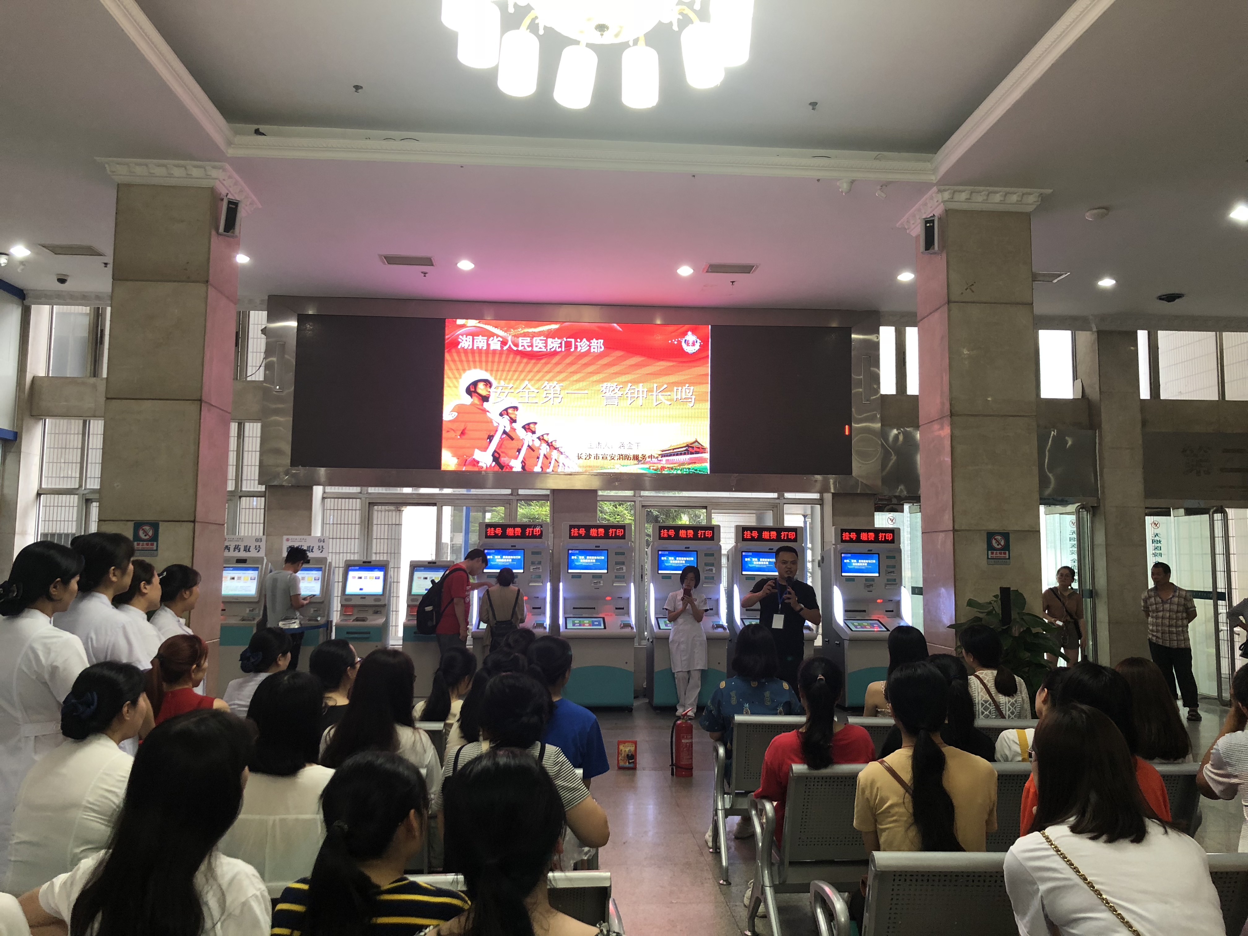 为确保及时、有序、高效地应对门诊可能发生的突发事件,提高医护人员对突发事件的快速反应和处置能力,维护门诊良好的就诊秩序,6月27号下午6:00~8:00,门诊部联合一站式服务中心赶在暑期高峰到来之前组织了一场别开生面的现场应急演练。演练内容为门诊常见的突发事件应急预案,包含患者病情突变、火灾、涨水、病人跌倒、暴力伤医等意外伤害事件的应急处置。演练剧本都经过事先的精心准备,突出真实、快速反应的特点,给参与者带来了身临其境的现场感。