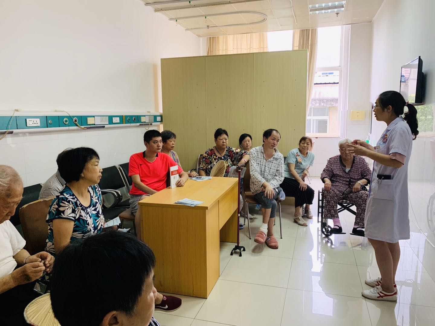 说干就干,短短几分钟,十几位住院患者如约来到了健康教育室,陈露护士从老年患者护理角度出发,讲解了骨质疏松症的日常防护,李浪波副主任医师更是结合他们的病情及目前气候状况,进行了《糖友们如何清凉渡夏》的讲座,整体内容浅显、生动,切合实际,获得了在座患者的一致好评。