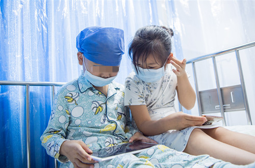 7月3日,是小森完成造血干细胞移植,从细胞移植病房转到普通病房的日子,爸爸、妈妈和妹妹一大早就来到病房的探视通道,隔着玻璃跟小森交流,想到儿子马上就要迎来新生,一家人激动不已。上午10:30,在医护人员的庆祝声中,小森走出细胞移植病房,两兄妹用自己熟悉的方式打招呼,回到普通病房后就迫不及待地一起玩起了手机游戏。