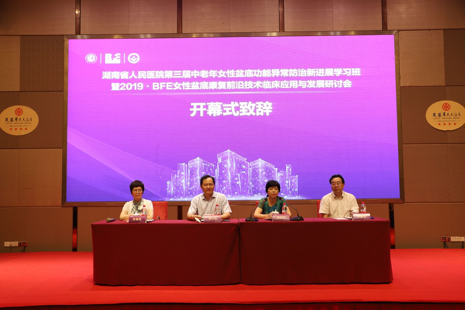 此次会议由湖南省女医师协会老年女性盆底功能障碍防治专业委员会主办,捷克论坛 妇产三科承办,欧洲生物反馈协会(BFE)及伟思医学中心提供技术支持。妇产三科主任陈春燕担任大会主席,院长李小松、常务副院长刘景诗、湖南省女医师协会会长陈亚莎出席会议并讲话。