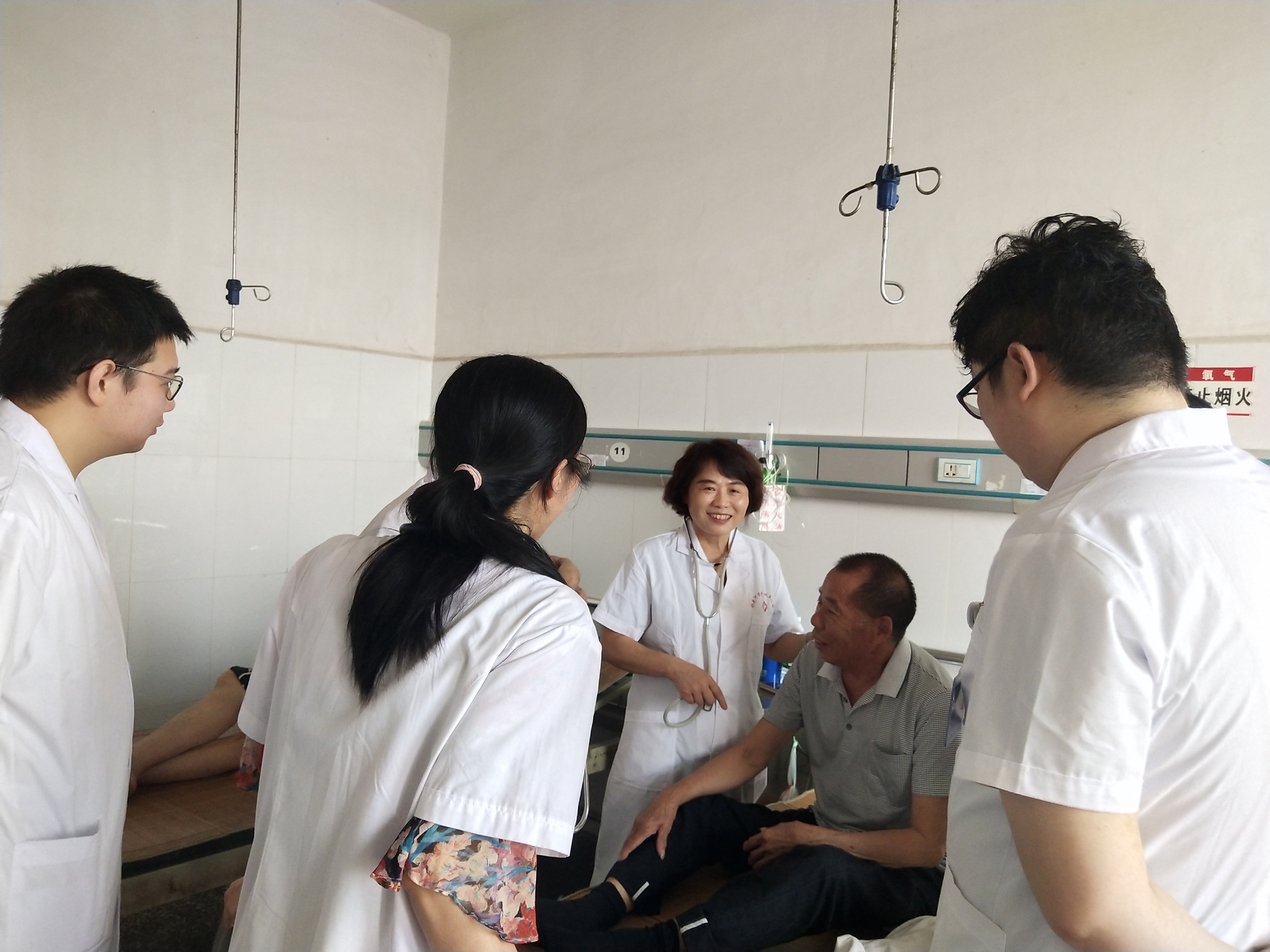 7月22日早上6时,朱黎明教授就从长沙出发赶往桂东县中医捷克论坛 ,经过4个多小时的长途跋涉到达桂东县。在桂东县中捷克论坛 党委书记钟书记、内科主任钟碧琼的陪同下,朱教授下车后立即赶往内科病房进行疑难危重病人查房,仔细询问病史,不放过任何一个细节。结合病例查房规范诊断和治疗,进行无创呼吸机治疗的现场示范、呼吸机参数设定、讲解无创辅助通气的注意事项,教医生和患者做简单易学的呼吸康复训练方法。