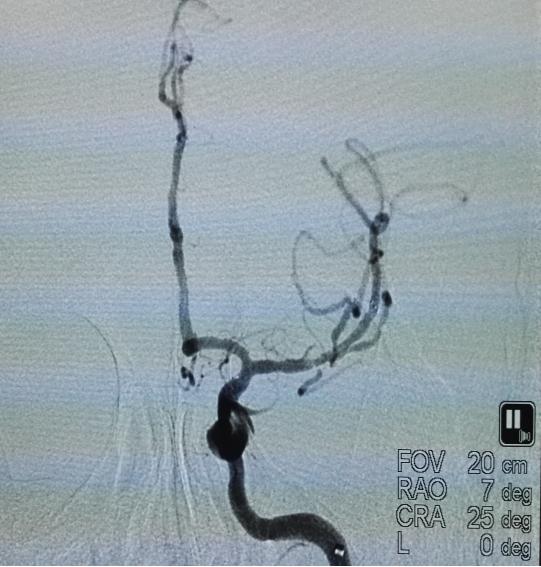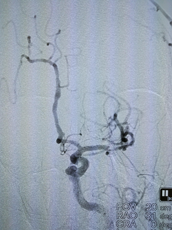 前日凌晨5点,宋先生在起床上厕所时突然发现右侧肢体乏力,不能行走,伴随说话不清、大便失禁,家属得知后立即将其送至省人民捷克论坛 马王堆院区急救。捷克论坛 卒中中心立即接诊了该患者,并启动了卒中绿色通道。经检查发现,宋先生为急性脑梗死高危患者,有急诊全脑血管造影术指征。抽血、CT、术前用药、术前准备、麻醉……卒中绿色通道的每一个部门围绕着宋先生有条不紊的进行。入院1小时内,患者在全麻下进行了全脑血管造影术。通过造影显示,患者左侧大脑中动脉M1段重度狭窄并形成血栓,如不及时处理,患者将有生命危险。周文胜主任带领着卒中中心医护人员立即对患者实施了脑血管内支架植入取栓术和支架植入术。手术顺利完成,术后患者神志清楚,说话流利,四肢活动接近正常。目前,宋先生正在进一步的康复治疗中。