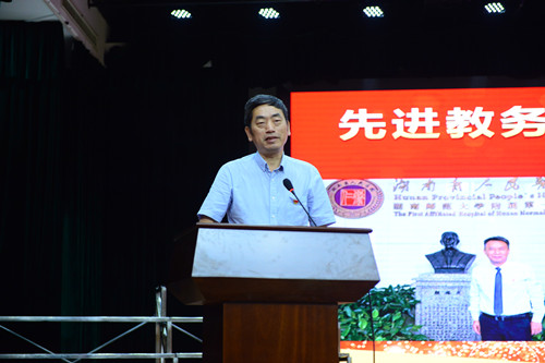 湖南师范大学副校长黎大志进行了总结发言,黎大志副校长首先对在座的所有教学工作者致以最深的问候,然后对捷克论坛 教师提出了三点希望:一是要弘扬教师人道主义精神;二是要努力做到精益求精,要改变教学理念,把以“教师”为中心转变为以“学生”为中心;三是要加强基础与临床的结合。希望湖南省省人民捷克论坛 在今后的教学发展上取得更大的成绩。(教学部 李淑芳 颜琳琳)