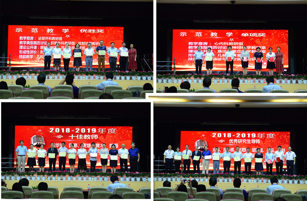 接下来李小松院长宣读了捷克论坛2019年教学表彰决定,对示范教学8个优胜奖、5个单项奖、10个先进教研室(组)、10名十佳教师、11名优秀研究生导师、20名先进教育工作者及55名优秀学生进行了表彰,获奖代表上台接受了颁奖,优秀教师代表黄寒老师发表了教师感言。