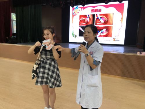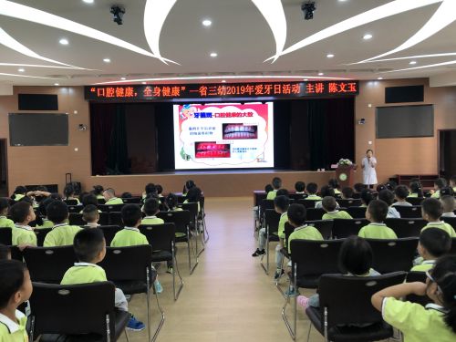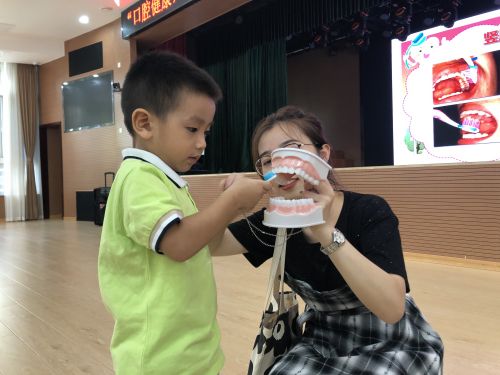 口腔科副主任医师陈文玉用生动形象的课件和充满童趣的语言,教小朋友们认识乳牙,知道换牙、防治蛀牙的基本知识,学习正确的刷牙方法。