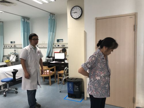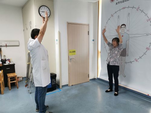 天心阁院区肩痛门诊就诊。王靖主任医师详细询问病史,并为她进行体格检查后,初步判断是“肩袖损伤”,将她收入关节和运动医学科病房。