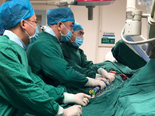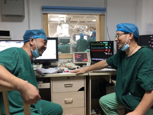 介入血管外科康友根主任,共同为患者实施胸主动脉夹层腔内覆膜支架修复术,手术过程顺利。术后,现场紧张的气氛立即松缓下来,大家露出了会心的微笑。